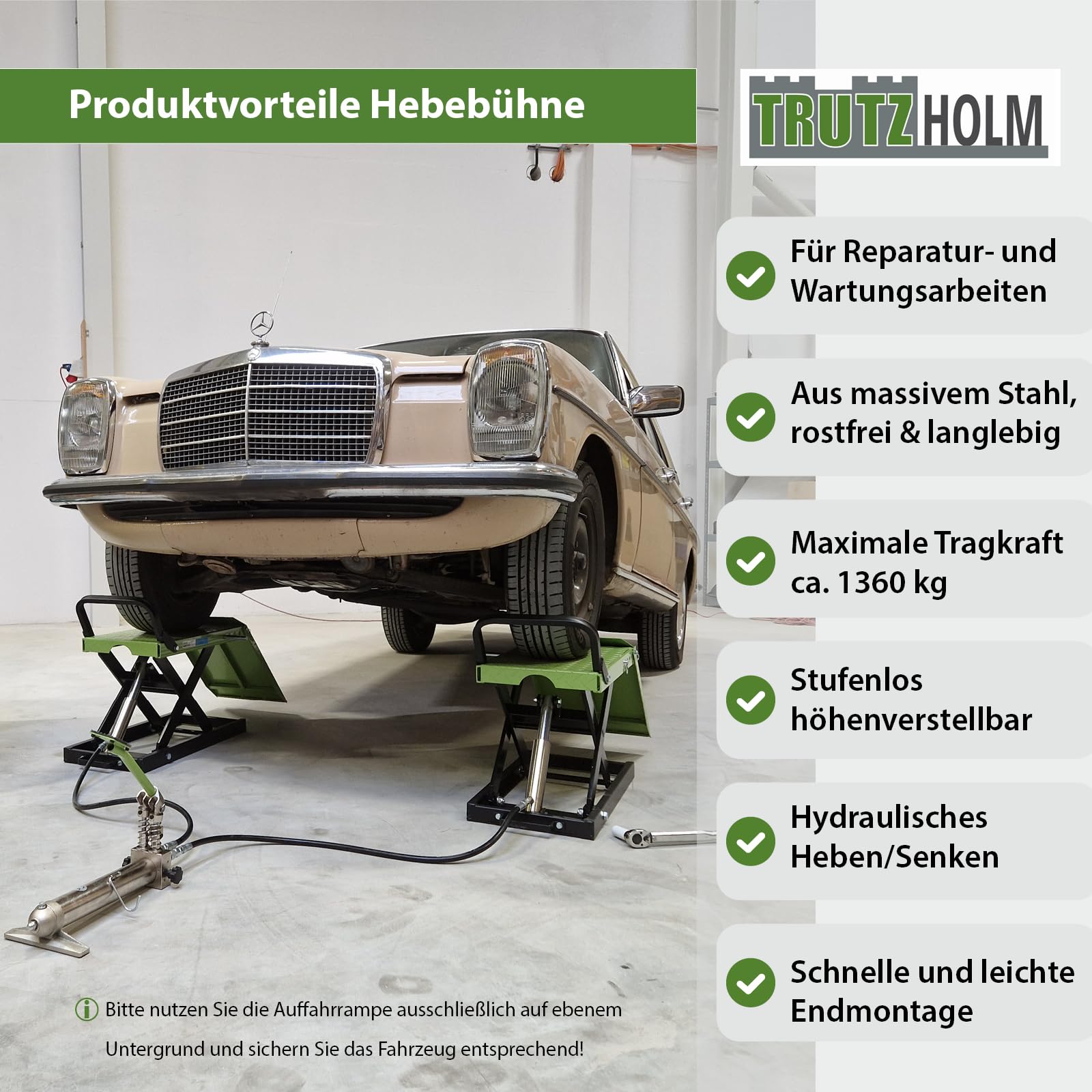 TRUTZHOLM Auffahrrampe hydraulisch höhenverstellbar Tragkraft 1360 kg Breite je Hebeplattform 34 cm doppelte Hebebühne Wagenheber Car Lift Scherenheber Montagerampe KFZ Rampe Auffahrbock schwarz/grün